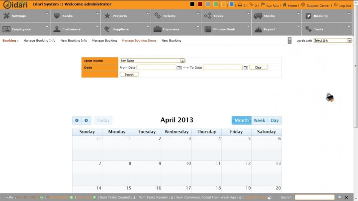 Idari Online offers direct online system for CRM, Accounting, Booking, Task Management, Stock, Reports, Customer Tickets and more